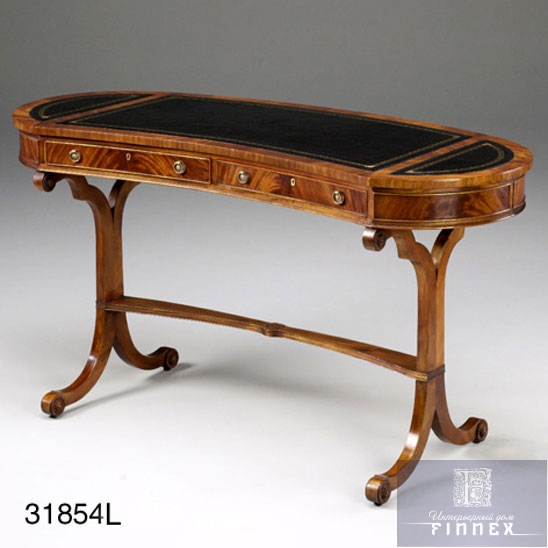 Письменный стол арт. 33048L, размеры : 138×60 х h 75 см. Кожанная столешница — варианты расцветки зеленая, коричневая. Массив красного дерева, ручная резьба.